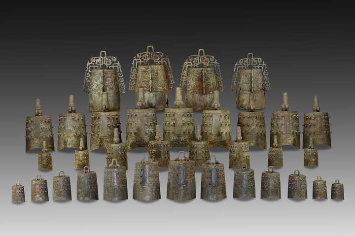 從葉家山、郭家廟、蘇家壟到義地崗、棗樹林,再到擂鼓墩等曾國(guó)墓地,累計(jì)3萬余件出土文物及豐富的金文資料,實(shí)證曾國(guó)與史書所記載的“隨國(guó)”為一國(guó)兩名。這個(gè)“考古挖出來的曾國(guó)”大致分西周早期、西周晚期至春秋早期、春秋中期至戰(zhàn)國(guó)中期3個(gè)階段,時(shí)間跨度700余年。各個(gè)時(shí)期的曾國(guó)墓葬中都出土大量精美的青銅器,都有著豐富的音樂文物。編鐘,幾乎成為曾侯家族陪葬的“標(biāo)配”。