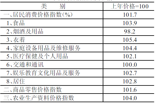 居民消費價格總指數(shù)上漲1.7%,其中:食品價格上漲3.9%,居住價格上漲2.8%。