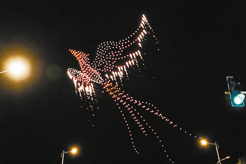 9月19日晚,在丹鳳縣城上空,以“飛越秦嶺 逐夢丹鳳”為主題的千架無人機(jī)燈光秀表演點亮了夜空,無人機(jī)群變幻的鳳凰圖案、全民健身運動三秦、打造低空經(jīng)濟(jì)、宇宙星辰等畫面,與現(xiàn)代城市天際線交相輝映,為現(xiàn)場觀眾呈現(xiàn)了一場精彩的視覺與文化盛宴。