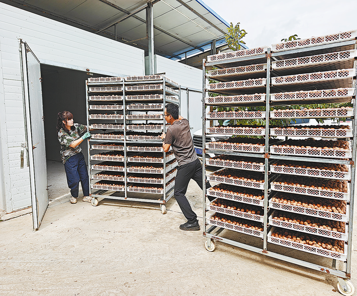 金秋收獲季,核桃掛滿枝。9月16日,走進(jìn)洛南縣景村鎮(zhèn)八一村的商洛盛大實(shí)業(yè)股份有限公司紅仁核桃示范基地,村民或站在樹下?lián)旌颂遥蛘呗槔匮b袋。基地負(fù)責(zé)人董崗開著三輪車穿梭于基地和廠區(qū)之間搬運(yùn)剛剛采摘的鮮核桃,并不時協(xié)調(diào)具體事宜。附近的廠區(qū)里,村民集中分揀、脫皮、沖洗、晾曬、烘干紅仁核桃,繁忙的景象里滿是收獲的喜悅。