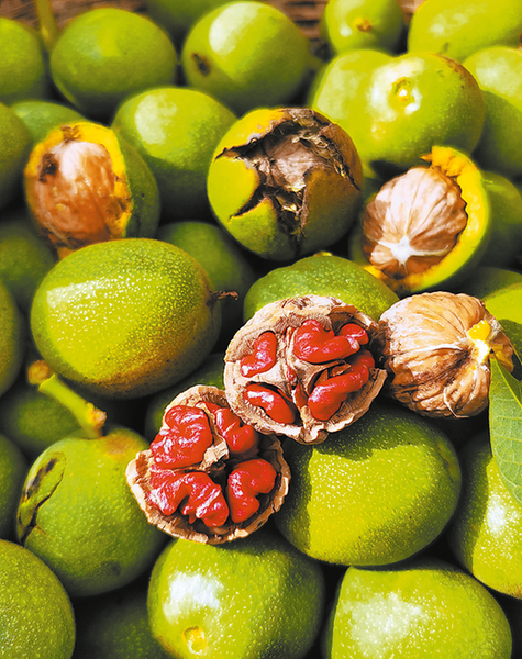 紅仁核桃因其成熟期較晚、避晚霜能力強(qiáng)、豐產(chǎn)性好而深受種植戶的喜愛。紅仁核桃具有仁色鮮紅、營養(yǎng)價值極高、口感酥脆微甜等特點(diǎn),富含花色苷及鞣花單寧,具有抗氧化、抗衰老、抗癌、保護(hù)心血管、調(diào)節(jié)膽固醇、增強(qiáng)免疫力的功效,被人們稱為“核桃中的貴族”,是世界稀有品種。2015年開始,商洛盛大實(shí)業(yè)股份有限公司瞄準(zhǔn)市場機(jī)遇,從美國加利福尼亞州引種了紅仁核桃品種,開展了系統(tǒng)引種研究取得成功。目前,公司通過土地流轉(zhuǎn)已建成試驗(yàn)田、示范園1820畝。在市、縣政府的大力支持下,采取“政府推動、企業(yè)帶動、示范引領(lǐng)、效益拉動”等推廣模式,通過8年努力,推廣面積達(dá)5萬畝,有力推動了核桃產(chǎn)業(yè)升級換代、提質(zhì)增效。