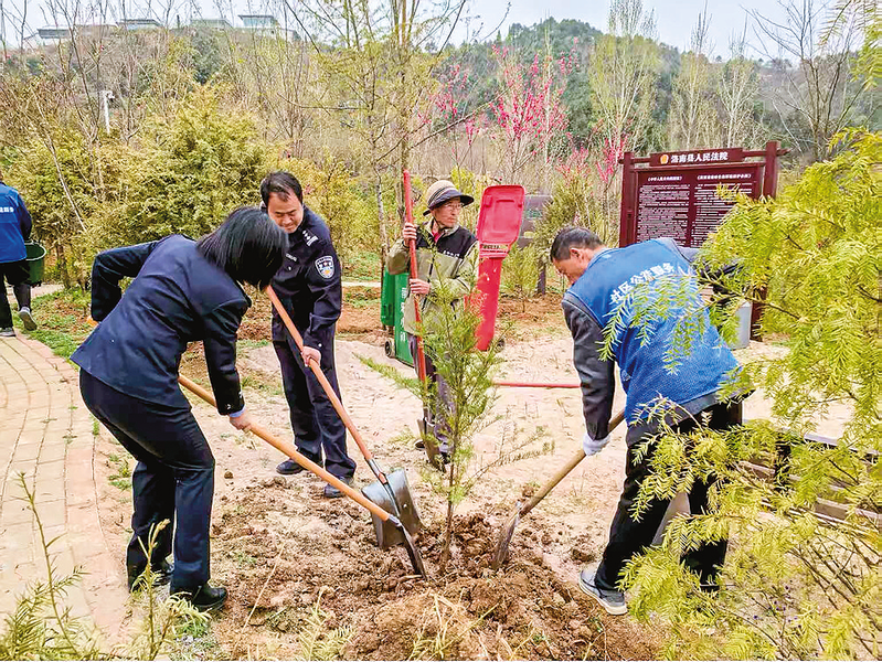 洛南縣司法局充分挖掘本地教育資源、拓展教育載體。圖為近日,組織社區(qū)矯正對(duì)象在秦嶺紅豆杉保護(hù)基地植樹(shù)。