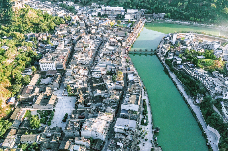 △漫川古鎮(zhèn)古建筑群與青山綠水相映成趣,構(gòu)就一幅美麗的山水畫卷。